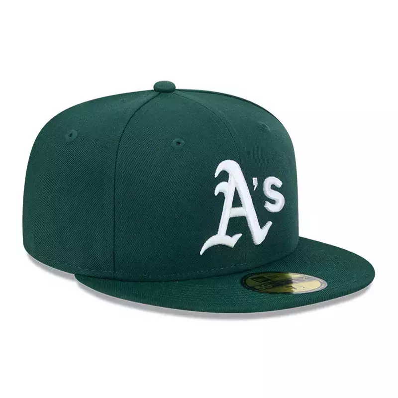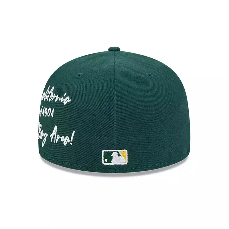 La gorra New Era 59FIFTY Oakland Athletics MLB Verbiage es la elección perfecta para los fanáticos que buscan un estilo auténtico y exclusivo. Destaca por su logotipo bordado de los A’s en el frente, que representa con orgullo al equipo.