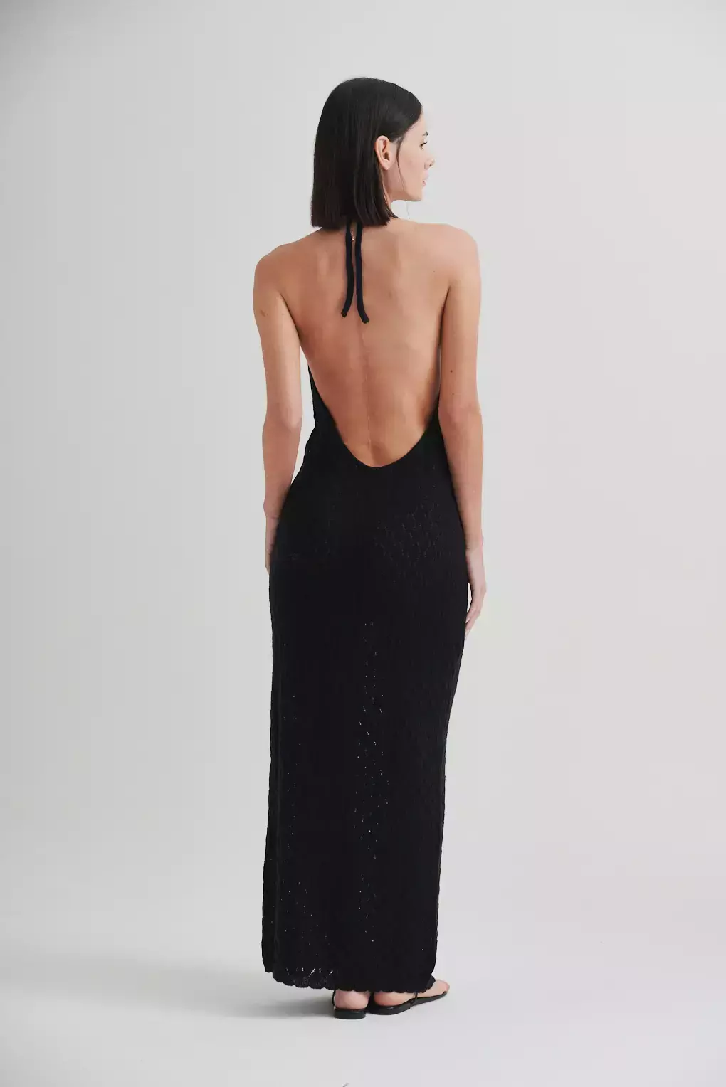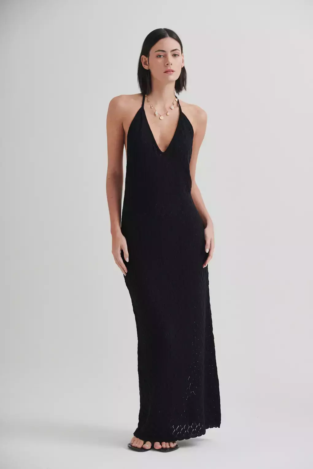 El Vestido Sophia está confeccionado en algodón calado con un delicado diseño geométrico que aporta un aire bohemio y sofisticado. Su corte largo y fluido estiliza la figura, mientras que los finos breteles se anudan al cuello, permitiendo un ajuste cómodo y femenino.