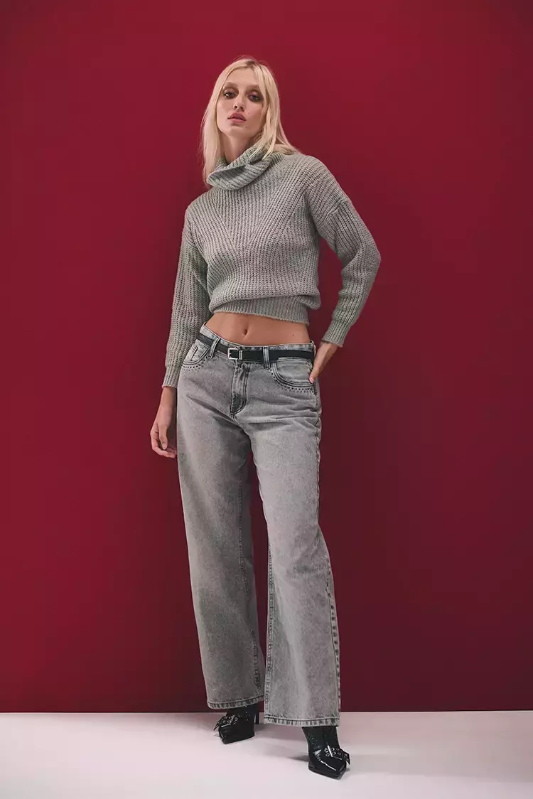 Este modelo de corte wide leg ofrece una silueta relajada y moderna, con piernas amplias que aportan comodidad proporcionando un ajuste estructurado y favorecedor. Confeccionado en denim rígido de tiro medio.